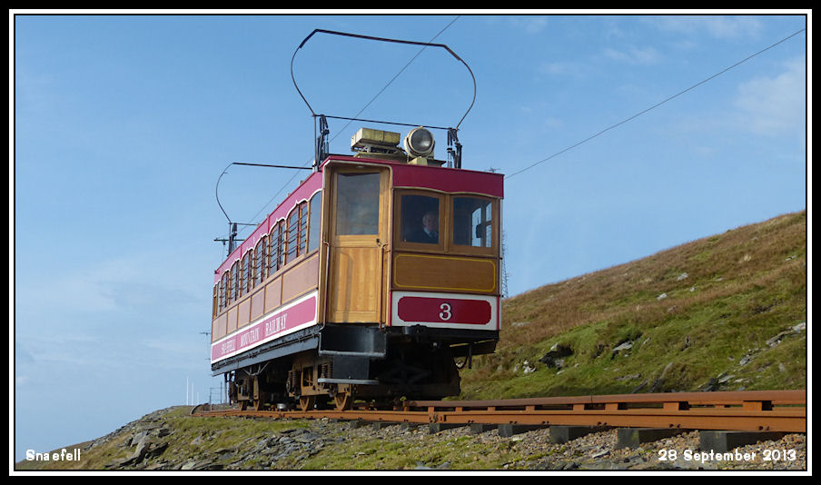 Car No 3 has just left the summit on the 10:10 service to Laxey