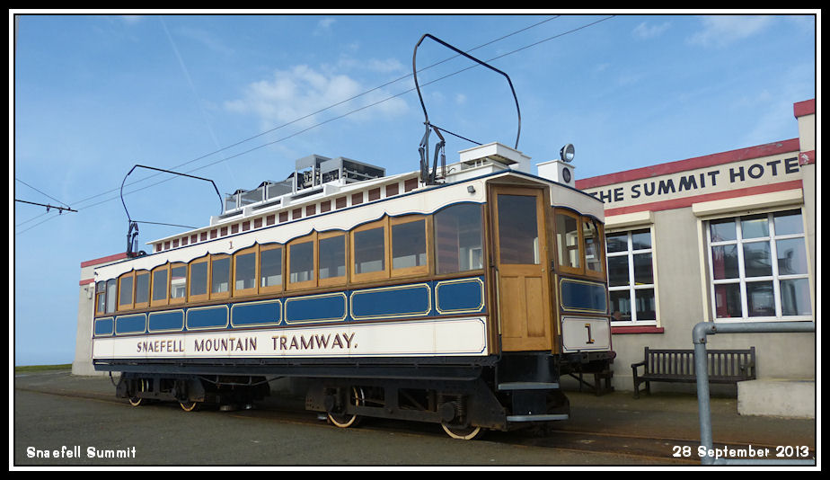 Car No 1 looking very smart in the blue 'Snaefell Mountain Tramway' livery