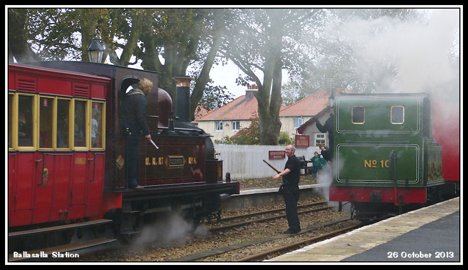 Handing over the single line staffs - and the Caley's crew get a bit of banter for being late!