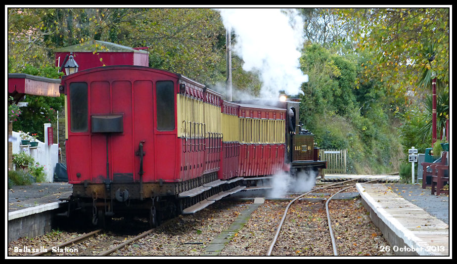 The smoke clears as 'Caledonia' crosses the main road and heads to Castletown