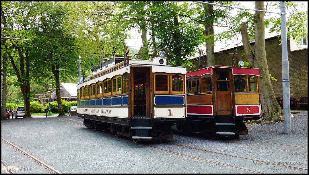 SMR Cars No 1 & No 5 stand in Laxey Station