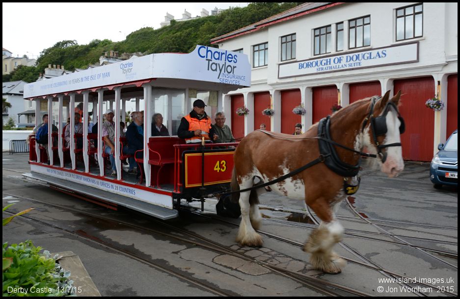 'Teddy' arrives from the Sea Terminal with tram car No 43, passing the car sheds