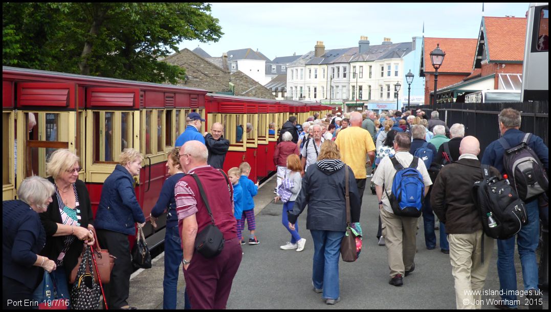 A very busy station after the arrival of the train from Douglas