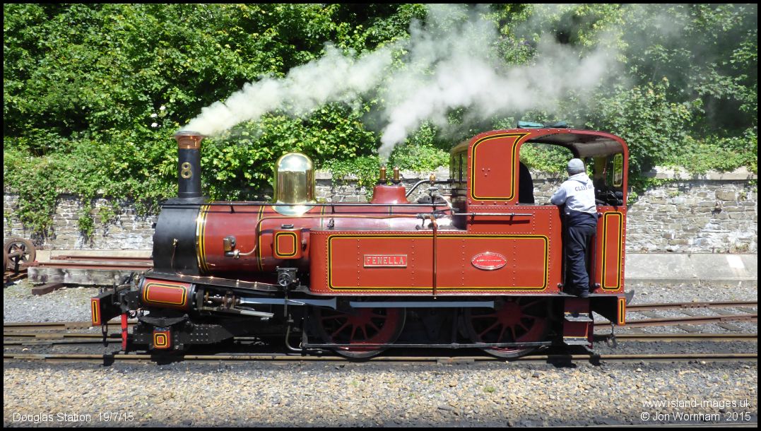 A side on view of small boilered No 8 'Fenella', delivered to the railway in 1894