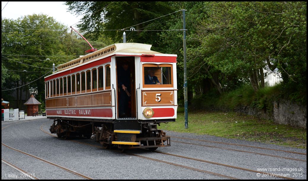 Having operated the 17:40 terminating at Laxey, No 5 runs forward to the new pointwork outside the station to cross over to the return line