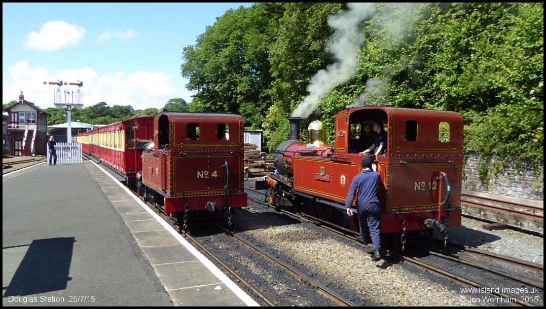 Running around 20 minutes late, No 4 'Loch' arrives with the train from Port Erin