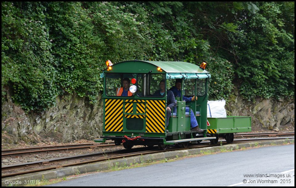The green Wickham railcar approaches Groudle station returning to Douglas from Laxey