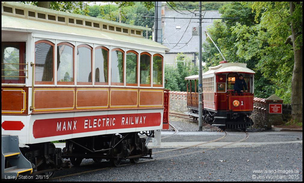 Car No 1 arriving from Douglas has to hold on the viaduct as there's no room in the station!