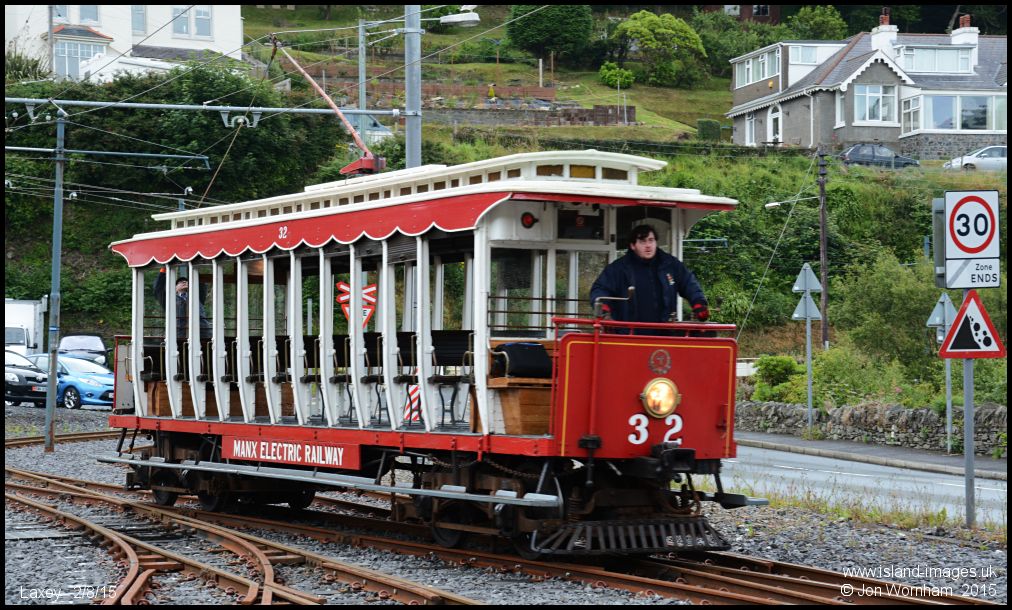 With the Ramsey car arrived the terminating trains can now use the main line to run around their trailers, a somewhat complicated business since the station was re-designed, involving crossing over roads four times. Car No 32 switches tracks.