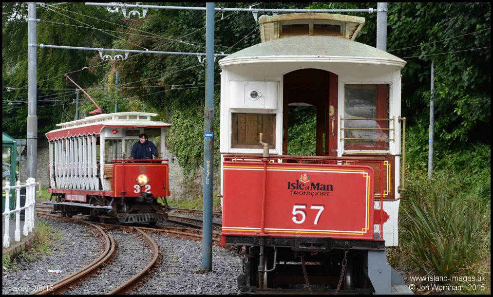Car No 32 returns to pick up saloon trailer No 57 before crossing the main road again back into the station
