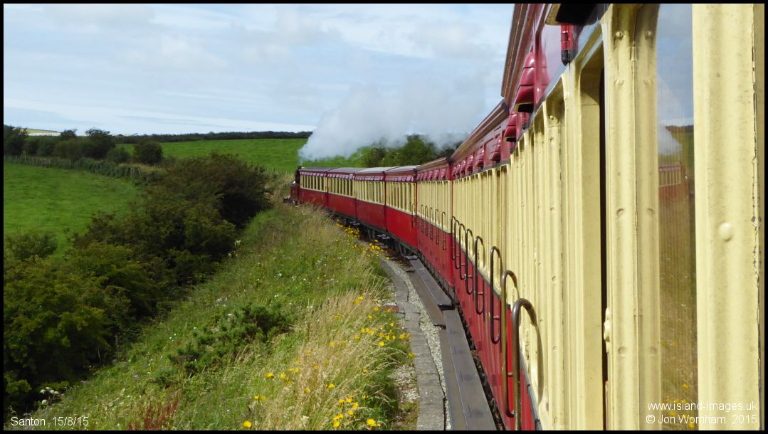 No 4 'Loch' round the long curve south of Santon station with an eight coach train, with 'Kissack' banking at the rear