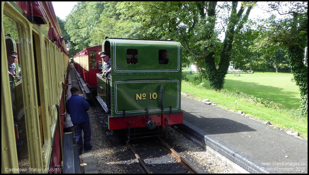 Passing the opposite direction train, hauled by No 10 'G.H. Wood'