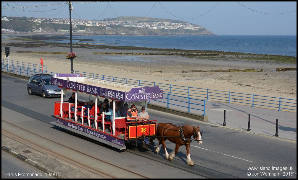 With the beach and Onchan Head behind, 'Mark' heads back towards the Sea Terminal with tram No 36