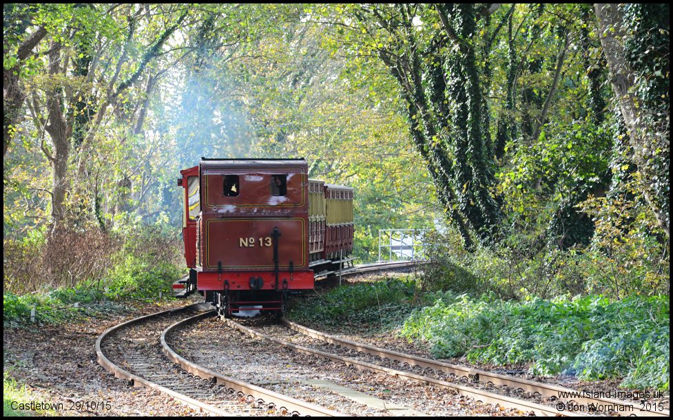 No 13' Kissack' approaches the station with a train from Port Erin