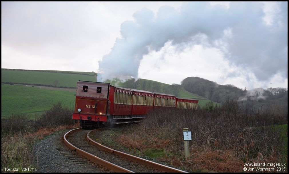No 12 'Hutchinson' climbs away from Port Soderick with a 'Santa Special', returning from Santon