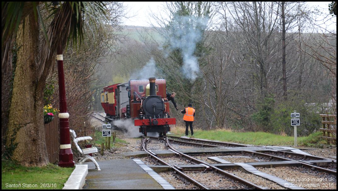Santon Station and No 8 'Fenella' is arriving with the mixed train