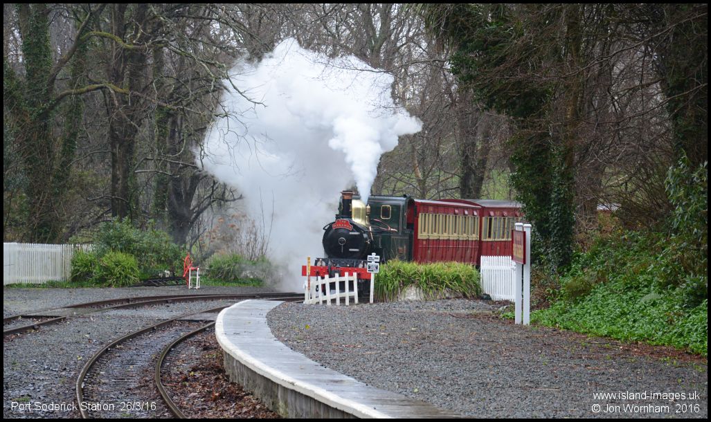 'Kissack' blowing off steam arriving at Port Soderick Station