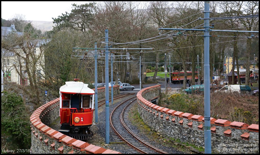 MER Car No 1 crosses the viaduct over the glen, just to the south of Laxey Station