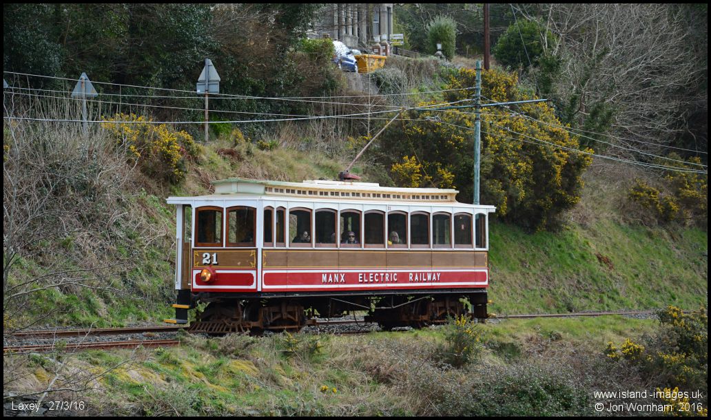 Car No 21 approaching Laxey from the Ramsey direction