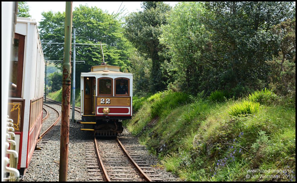Climbing the gradient towards Minorca and passing Car No 22 heading down into Laxey
