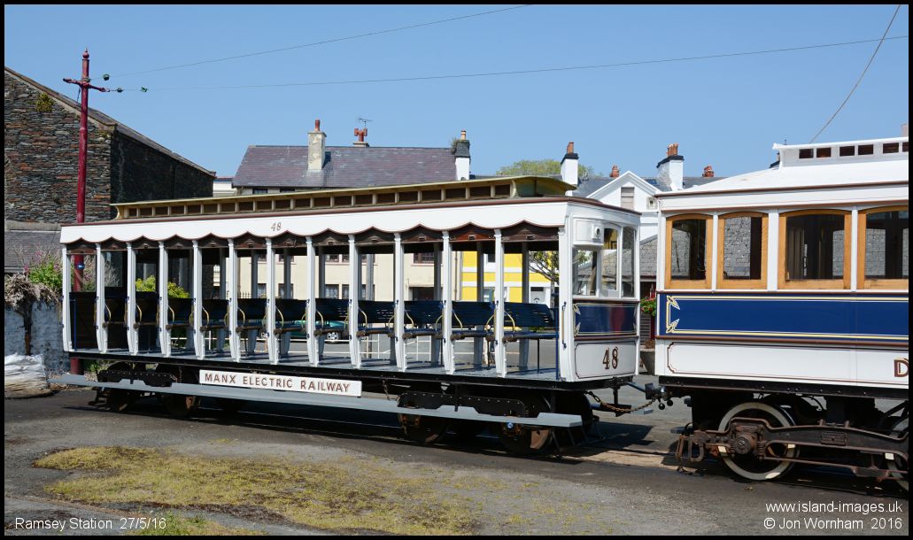 Matching No 7s blue livery is trailer No 48, which is a bit newer having been delivered in 1899 for the opening of the extension from Laxey to Ramsey