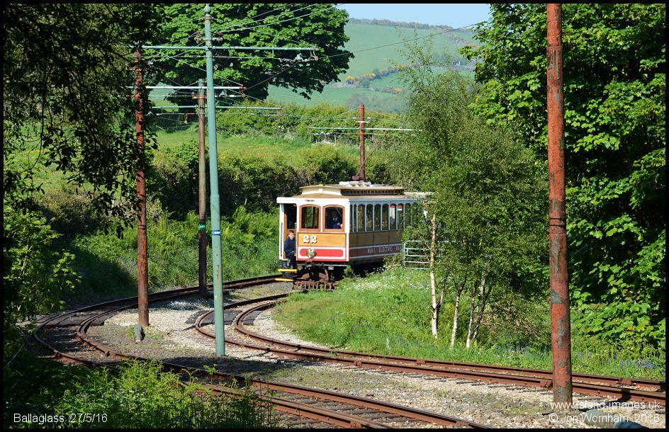 After walking in the picuresque Ballaglass Glen, Car No 22 is pictured arriving at the Ballaglass halt and we'll be catching it back to Douglas