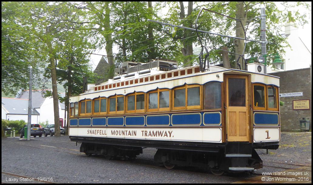Snaefell Mountain Railway Car No 1 at Laxey Station. Not many takers for trips to the summit today when it's so wet and misty even in Laxey!
