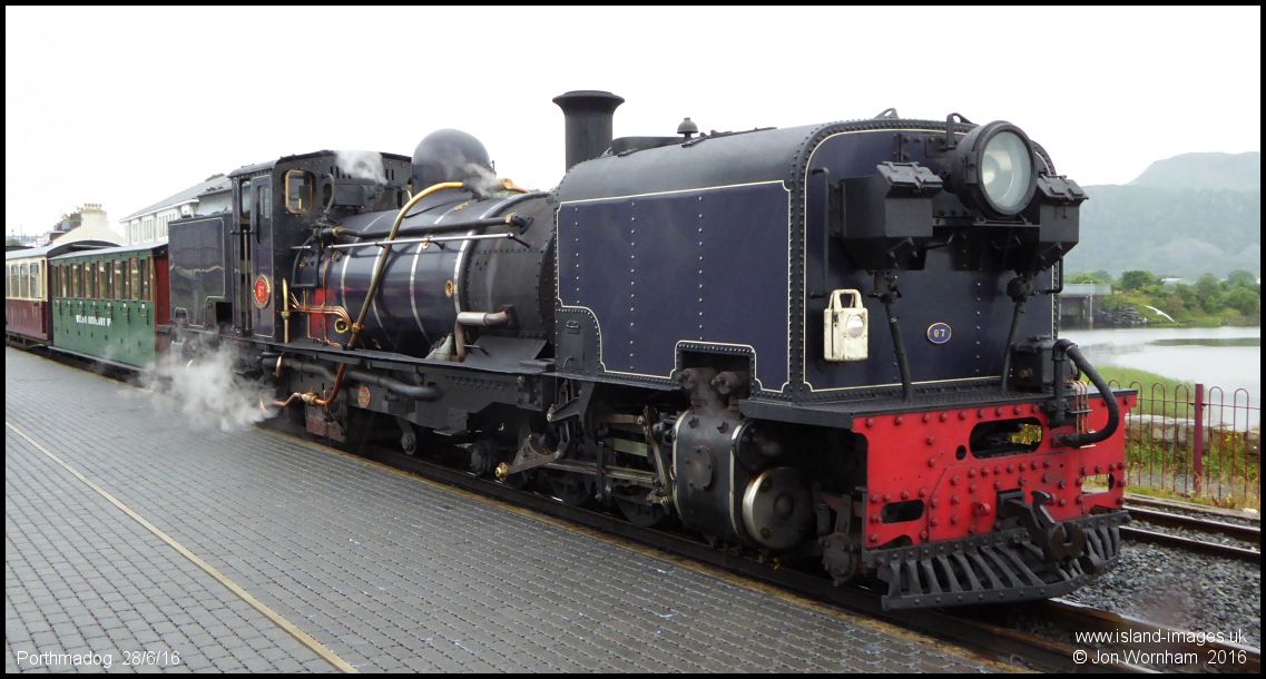 Welsh Highland 2-6-2+2-6-2 Garrett No 87 at Porthmadog Station. Built in 1936 by Cockerill, Belgium, under license from Beyer Peacock and delivered to South Africa
