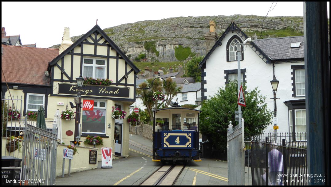 Great Orme Tramway Car No 4 pictured leaving the lower terminus of the line in Llandudno