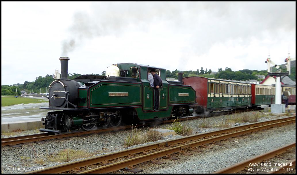 'Iarll Merionydd' leaves the station area and heads onto the Cob