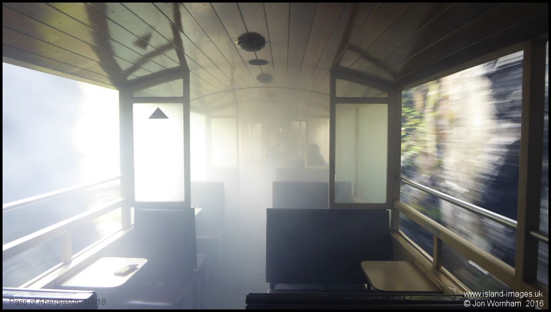 Just leaving the long tunnel - the smoke and steam in the carriage clears fairly quickly!