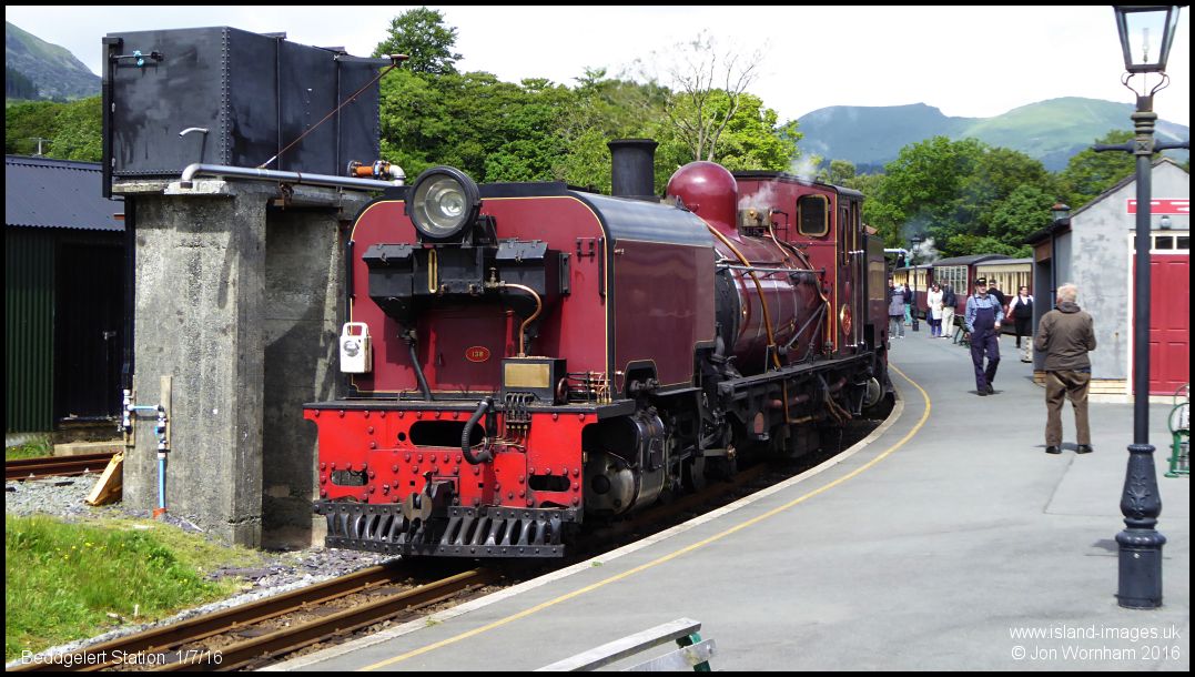WHR No 138 at Beddgelert Station with the Caernarfon to Porthmadog train