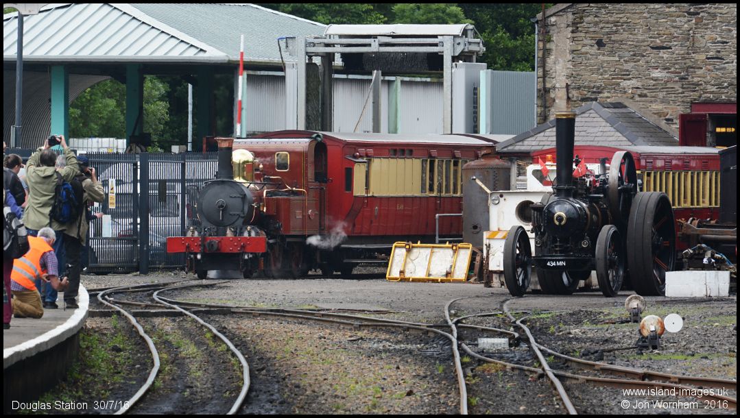 'Isle of Man Railway No 8 'Fenella' enters Douglas Station, unusually running chimney first in this direction for the event