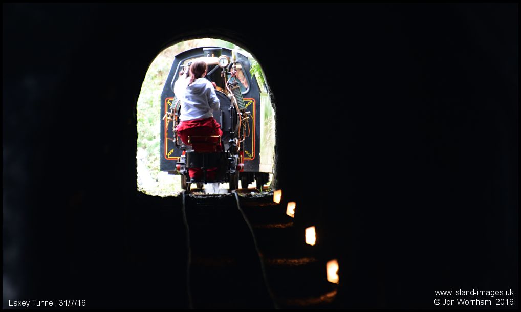 Great Laxey Mines Railway 'Ant', abou to enter the tunnel from the Mines Yard direction. Drivers have to sit down for the passage through the tunnel