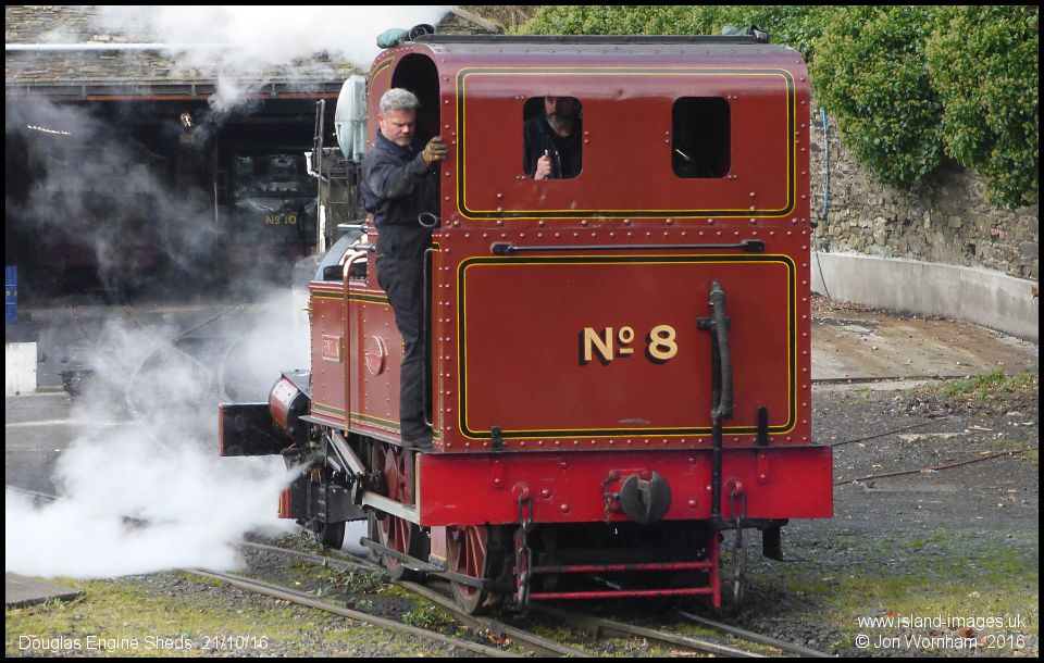 No 8 'Fenella' comes off shed to operate the 11:50 to Port Erin