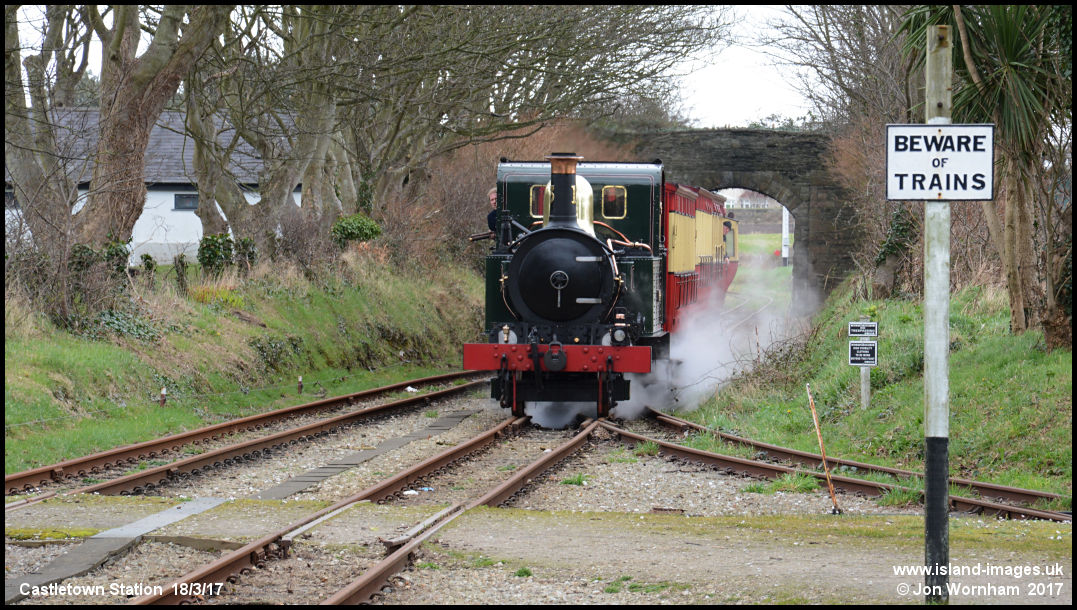 'Kissack' arrives with the train from Douglas, with the driver ready to hand over the single line tokens