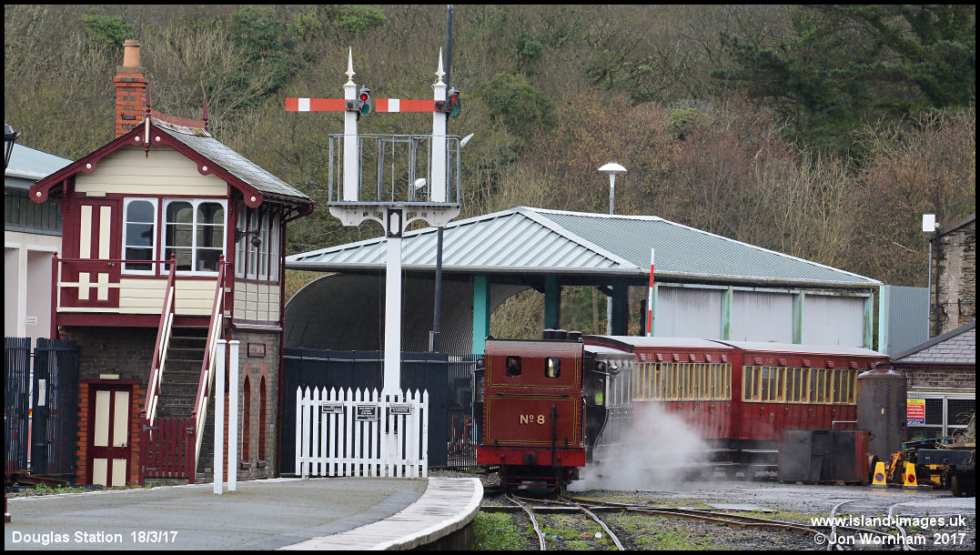 Back to Douglas and 'Fenella' is arriving, passing the signal box.