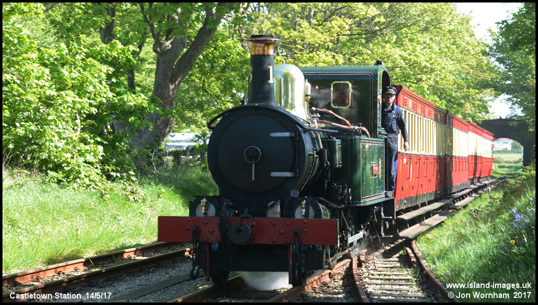 The 09:50 from Douglas to Port Erin arrives at Castletown behind No 13 'Kissack'