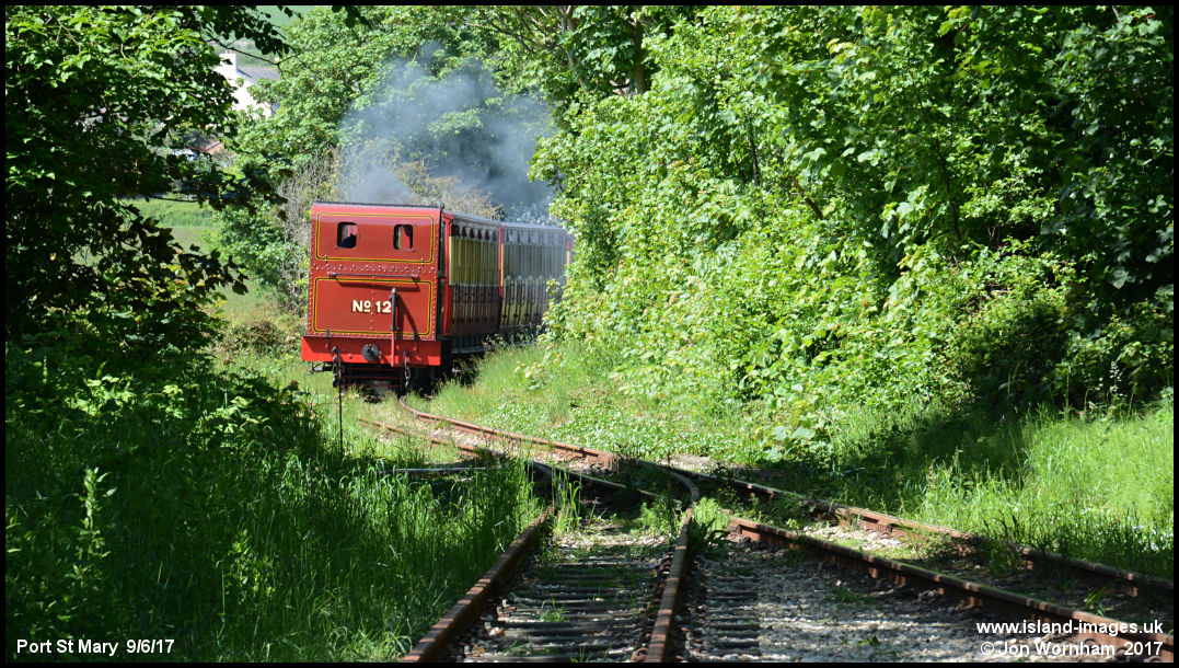 No 12 'Hutchinson' approaches Port St Mary station after the short trip from Port Erin