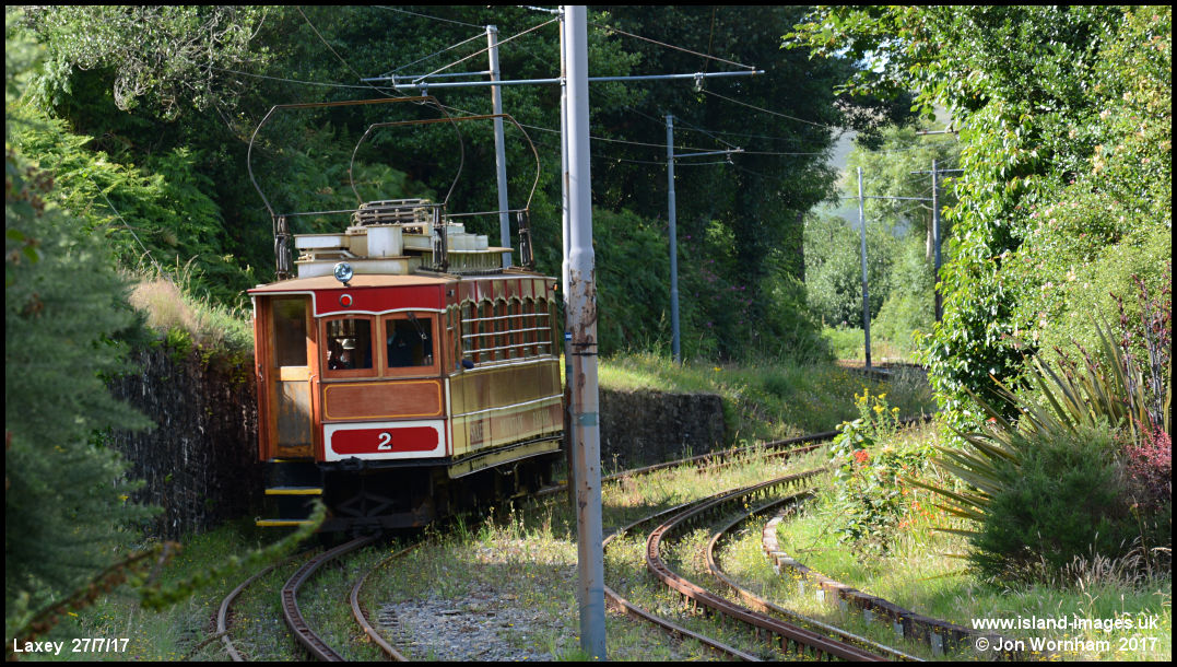 Snaefell Mountain car No 2 heads carefully past the depot spur, returning from the Summit