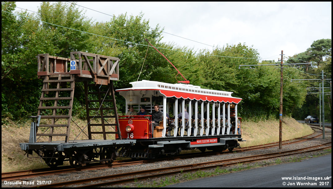 Car No 16 and the tower wagon run alongside the Groudle Road