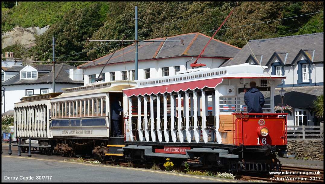 Not an MER 'double header', but a shunting manoeuvre at the Derby Castle terminus with Cars No 16 and No 7!