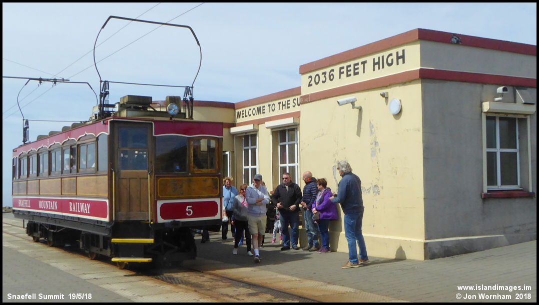 Car No 5 at the Summit, with some rather chilly passengers waiting to board!