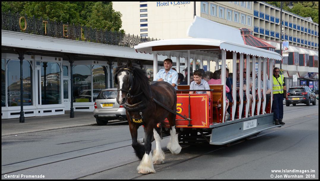Tram No 45 now has 'Rocky' hauling. The horses work quite short shifts before returning to the stables.