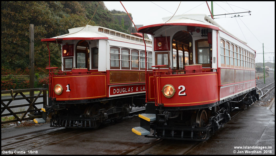 MER Cars No 1 & 2 stand side by side at the Derby Castle terminus.
