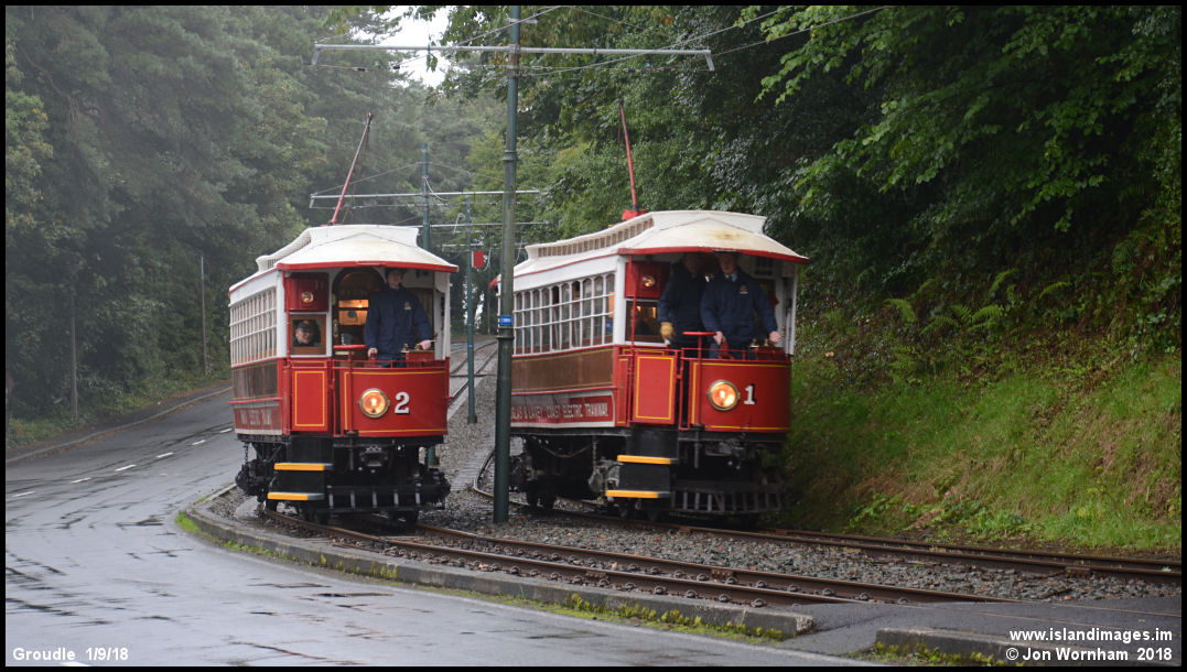 Cars No 1 & 2 arrive at Groudle, the 1893 terminus of the line. By 1894 the line had been extended to Laxey and reached the outskirts of Ramsey in 1898, although not arriving at the town terminus until 1899.