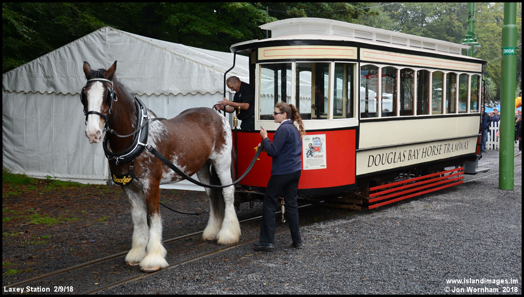 'Douglas' poses with Horse Tramway No1 in the siding at Laxey.