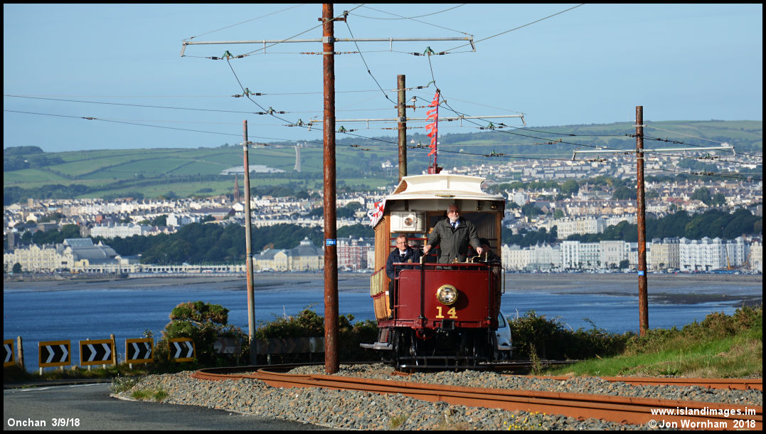 Car No 14 climbs away from Douglas with the Director of Public Transport, Ian Longworth, at the controls.