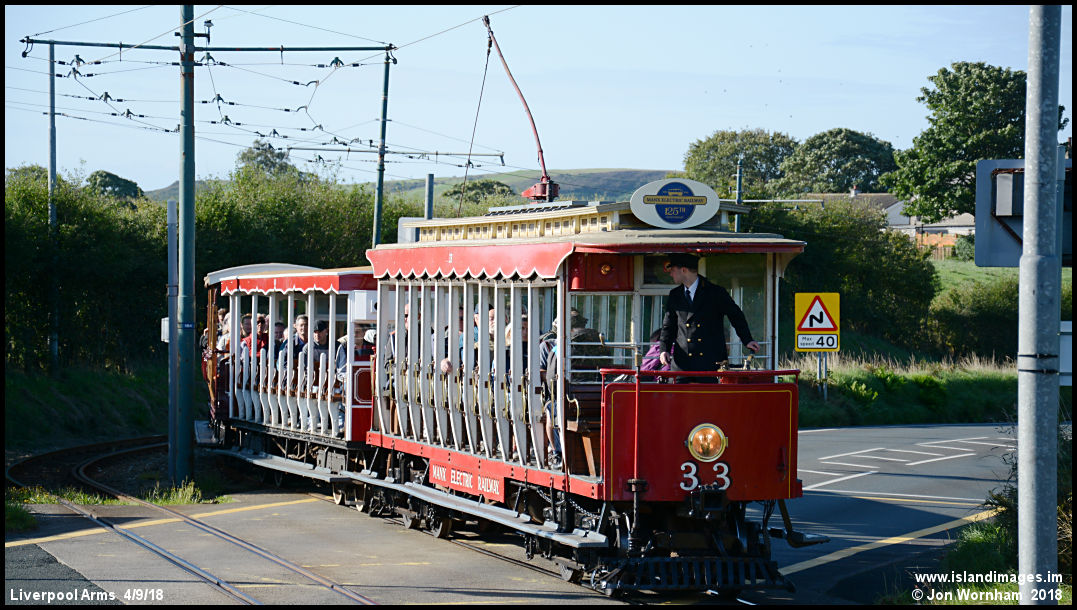 Car No 33 crosses the main Onchan to Laxey road just north of the Liverpool Arms.