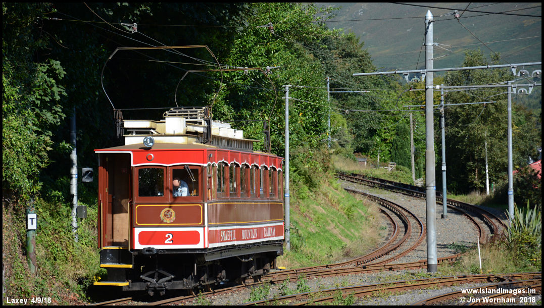At Laxey, Snaefell Car No 2 is just about to take the right hand track fro the climb to the Summit.